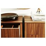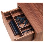 Ящики открываются легким нажатием. Шпон грецкого ореха с характерным рисунком поверхности придает каждому предмету мебели уникальность. Шпон грецкого ореха – прочный натуральный материал.