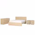 Каркас кровати, две прикроватные тумбы и комод с 6 ящиками помогут вам обустроить гармоничную спальню в едином стиле.