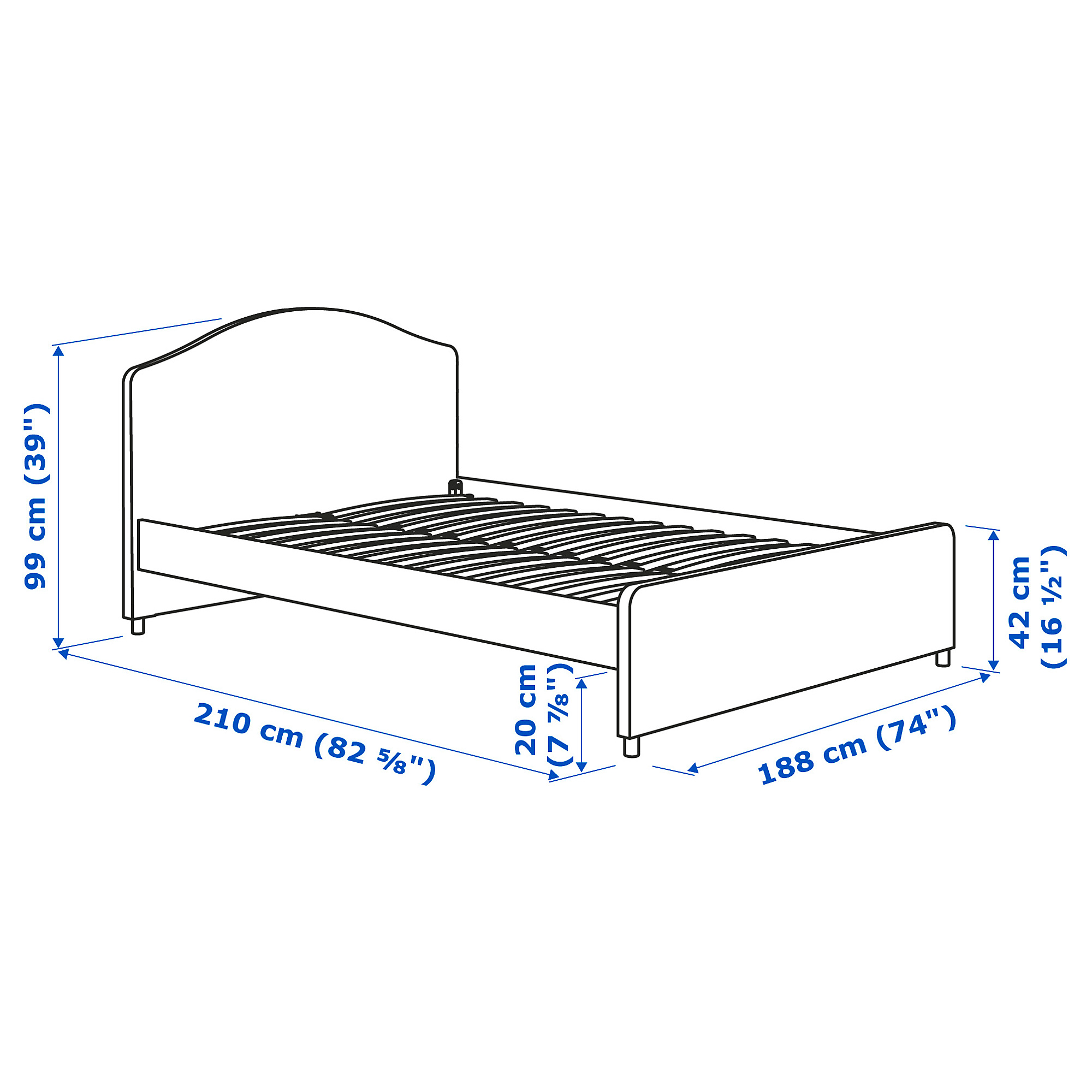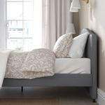 Каркас кровати с обивкой ХАУГА с мягким изголовьем выполнен в неизменно актуальном стиле и украшен классическими элементами декора. Мягкая ткань Висле сделана из переработанного полиэстера.