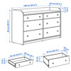 Широкий комод ХАУГА обеспечит достаточно места для хранения, а на его верхнюю панель можно поставить лампу и другие предметы.