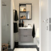 Разные типы решений для хранения дополняют друг друга. Шкафы под раковину с ящиками обеспечат отличный обзор разных мелочей, а зеркало на навесном шкафчике позволит с комфортом подготовиться к наступающему дню.