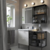Серия ЭНХЕТ позволяет с легкостью создавать комбинации мебели, чтобы начать в ванной новую жизнь. Здесь есть место на открытых полках и за глухими фасадами, зеркала с вашим симпатичным отражением и драгоценный простор столешницы для необходимых мелочей.