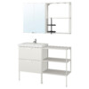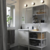 Серия ЭНХЕТ позволяет с легкостью создавать комбинации мебели, чтобы начать в ванной новую жизнь. Здесь есть место на открытых полках и за глухими фасадами, зеркала с вашим симпатичным отражением и драгоценный простор столешницы для необходимых мелочей.