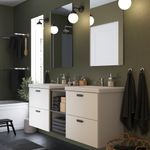 Мебель для ванной ЭНГШЁН выглядит современно и лаконично с минимумом деталей.