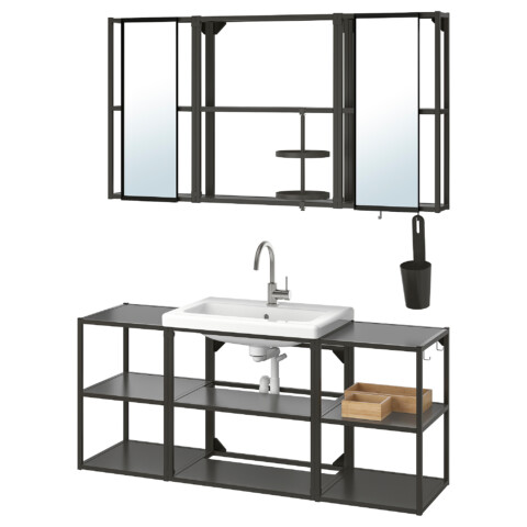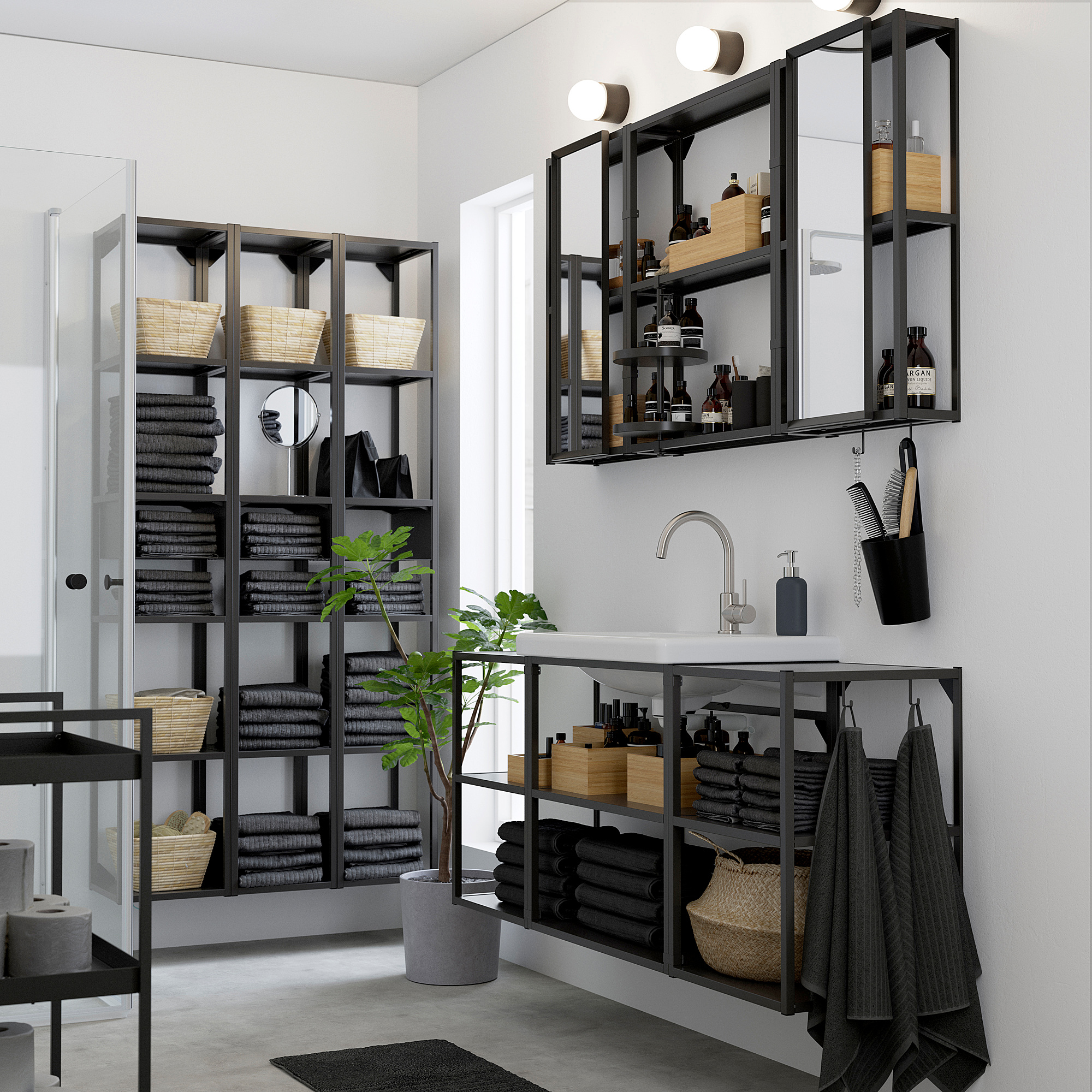 Утро в вашем доме. Какое оно? Хочется, чтобы в ванной было удобнее? Серия ЭНХЕТ призвана оптимизировать пространство и адаптировать ванную к вашим потребностям. Комбинируя открытое и закрытое хранение, можно спрятать в шкафах то, что вы бы не хотели показывать, или то, что не предназначено для детей, а на полки поставить предметы, которые вам нравятся.