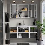Мебель для ванной ЭНГШЁН выглядит современно и лаконично с минимумом деталей.