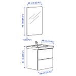 В комплект входит: 1 шкаф под раковину/2 ящика (Ш60 x Г47 x В58 см), 1 раковина (Ш63 x Г49 x В6 см), 1 смеситель (В18 см), 1 зеркало (Ш60 x В96 см).