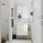 Особенности «FISKÅN ФИСКОН / TVÄLLEN ТВЭЛЛЕН Комплект мебели для ванной, 6 предмета – глянцевый белый/ПИЛКОН смеситель 64x43x65 см» заявленные производителем IKЕА:
