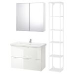 Комплект мебели для ванной, 7 предм., глянцевый белый/ПИЛКОН смеситель 84x43x65 см IKEA FISKÅN ФИСКОН / TVÄLLEN ТВЭЛЛЕН