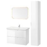 Особенности «FISKÅN ФИСКОН / TVÄLLEN ТВЭЛЛЕН Комплект мебели для ванной,8 предмета - глянцевый белый/ПИЛКОН смеситель 84x43x65 см» заявленные производителем IKЕА: