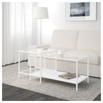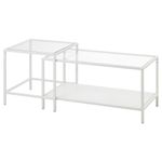 Столешницы из закаленного стекла устойчивы к загрязнениям и просты в уходе. Регулируемые ножки обеспечивают устойчивость даже на неровном полу. Можно сдвинуть для экономии места. Размеры: 50×50 см, высота 50 см и 90×45 см, высота 45,5 см.