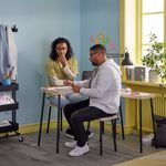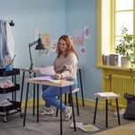 Можно использовать в разных комнатах — как отдельно, так и в сочетании с другой мебелью серии ХАУГА. За этим бежевым письменным столом вы сможете учиться или заниматься хобби, а в его ящиках есть место для закрытого