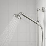 Комплект для душа с лейкой и ручным душем, позволяющий выбрать между расслабляющим потоком дождевых струй и сплошным потоком с равномерным распределением.