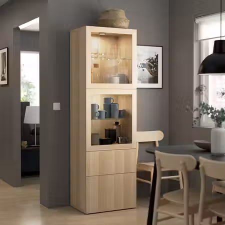 Стекло обеспечивает обзор содержимого и придает гардеробу легкость и воздушность.