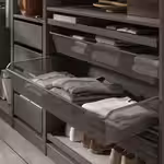 «Сложной и одновременно интересной задачей в процессе создания серии КОМЛИМЕНТ стала разработка единого стиля для разных внутренних элементов гардероба. Дизайн должен объединять элегантную стеклянную полку и функциональную вешалку для брюк. Все элементы должны сочетаться друг с другом, помогая вам без труда найти нужный предметов одежды или аксессуар. Товары серии выдержаны в нейтральном стиле и очень удобны. Теперь в вашем гардеробе будет царить идеальный порядок!»
