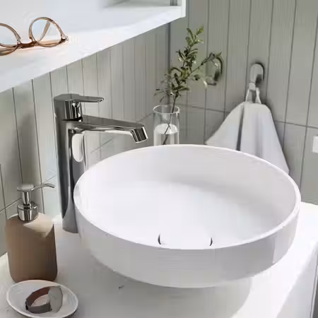 Мебель для ванной ЭНГШЁН выглядит современно и лаконично с минимумом деталей.