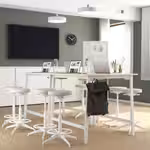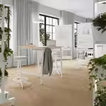 За этим высоким столом можно и сидеть, и стоять во время совещаний, обсуждений, перерывов, семинаров и работы в открытых рабочих пространствах.