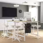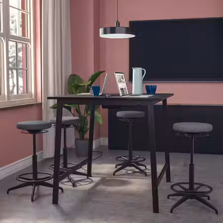 За этим высоким столом можно и сидеть, и стоять во время совещаний, обсуждений, перерывов, семинаров и работы в открытых рабочих пространствах.