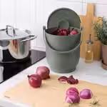 Поставьте этот контейнер на кухонную столешницу во время приготовления пищи и уборки, чтобы собирать органические и пищевые отходы.