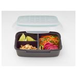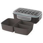 Контейнер с двумя съемными вставками, которые образуют 3 отделения, поэтому вы может положить в отдельные емкости, например, основное блюдо, салат и соус. Герметичная крышка предотвращает проливание и сохраняет содержимое.