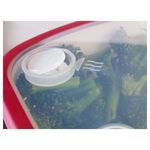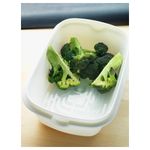 Под съемной решеткой скапливается жидкость и конденсат, что позволяет дольше сохранять свежесть продуктов. Можно использовать для хранения овощей и фруктов в холодильнике и любых продуктов в морозильнике.