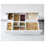 Для хранения сухих продуктов в кухонных шкафах и ящиках. Контейнеры разных размеров штабелируются, что позволяет максимально эффективно использовать пространство для хранения. Идеально подходит для размещения в ящиках и шкафах кухонной мебели МЕТОД.