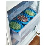 • Несколько контейнеров можно ставить один на другой; позволяет экономить место в холодильнике/морозильнике.