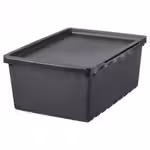 Прочный, надежный и чуть более вместительный пластиковый ящик с крышкой подходит для любых пространств и для хранения самых разных вещей.