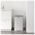 Легко открывается нажатием на крышку. Благодаря квадратной форме для контейнера легко найти место на кухне, например в углу или около рабочей поверхности, а также при необходимости можно поставить несколько контейнеров в ряд.
