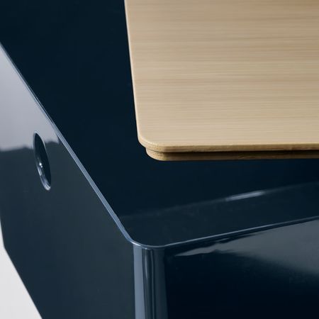 KUGGIS 096.102.14 Контейнер с крышкой, черно-синий/бамбук 26x35x15 см