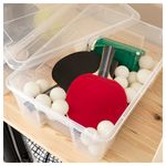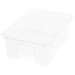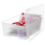 Прозрачный пластик позволяет видеть содержимое и не тратить время на поиски нужной вещи. Крышка защищает содержимое. Рекомендуется использовать только внутри помещений. Ширина: 39 см. Глубина: 28 см. Высота: 14 см. Объем: 11 л. Полипропилен.