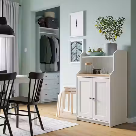 Можно использовать в разных комнатах — как отдельно, так и в сочетании с другой мебелью серии ХАУГА. Эта комбинация с 2 дверцами позволит хранить что угодно — от посуды до одежды — и красиво расставить предметы