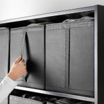 Все три ящика подходят к каркасу гардероба шириной 100 см.Удобно выдвигать благодаря ручке.Когда коробка вам не нужна, ее можно сложить. Для этого нужно открыть молнию на дне коробки.Подходит для каркасов гардеробов ПАКС глубиной 35 см.