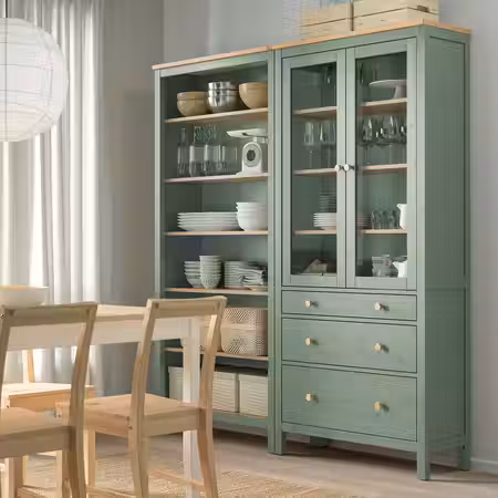 Шкаф-витрина позволяет продемонстрировать ваши бокалы и любимые безделушки, защищая их от пыли.