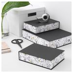 Отличное решение для хранения документов, фотографий и канцелярских принадлежностей. В комплект входит: 2 коробки (21x15x5 см) и 1 коробка (32x23x6,5 см). Комбинируется с другими товарами серий ТЬЕНА и ЛАНКМОЙ. Бумага, Краска.