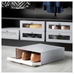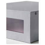 Прозрачное окошко позволяет увидеть, какая обувь хранится в коробке. Подходит для каркасов гардеробов ПАКС глубиной 35 см. Ширина: 30 см. Глубина: 34 см. Высота: 11 см. Ручка: 100% хлопок. Окно: ПЭТ (Полиэтилентерефталат). Контейнер: Бумага.
