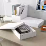 В низкой коробке удобно хранить документы, блокноты и предметы коллекционирования.