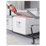 Крышка складывается при открывании, обеспечивая удобный доступ к содержимому. Благодаря ручкам удобно выдвигать и перемещать. Защищает одежду и постельное белье от пыли. Окошко для этикетки для организации хранения и быстрого поиска нужной вещи.