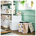 Вместительная коробка для хранения одежды, игрушек и аксессуаров. Подходит для шкафов ЭКЕТ глубиной 35 см и другой мебели для хранения с полками глубиной не менее 30 см. Благодаря прорезным ручкам коробку удобно поднимать и переносить.