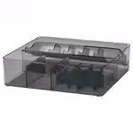Темный прозрачный пластик создает гармоничное впечатление, но при этом позволяет легко увидеть, что находится внутри.