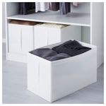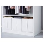 Все три ящика подходят к каркасу гардероба шириной 100 см. Удобно выдвигать благодаря ручке. Когда коробка вам не нужна, ее можно сложить. Для этого нужно открыть молнию на дне коробки. Подходит по размеру к каркасу гардероба ПАКС глубиной 58 см.