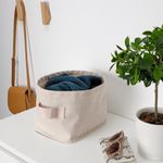 Эта корзина для хранения с напоминающей льняную ткань фактурой не только практична, но и декоративна. Благодаря лаконичному дизайну будет прекрасно смотреться, где бы вы ее ни поставили.