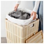 Пластиковые ножки защитят корзину для белья от воздействия влаги. Подкладку легко снять, чтобы постирать ее или перенести белье к стиральной машине. Вмещает до 6 кг белья. Длина: 37 см. Ширина: 37 см. Высота: 56 см. Объем: 50 л.