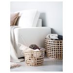 Корзины изготовлены вручную. Каждая корзина уникальна. Диаметр: 32 см. Высота: 22 см. Основные части: Бамбук, Морилка, Прозрачный акриловый лак. Переплет: Ротанг, Морилка, Прозрачный акриловый лак. Полностью изготовлено из возобновляемого сырья.