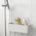 В этой корзине можно аккуратно расставить флаконы с шампунем и другими средствами в ванной, и не нужно сверлить стены. Прочные присоски хорошо держатся на гладких поверхностях, например, на стекле и плитке.