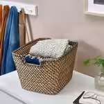 Эта вместительная корзина, сплетенная вручную из морских водорослей, станет красивым решением для хранения перчаток и шапок в прихожей, полотенец в ванной комнате или пледов в гостиной.