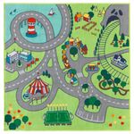 Этот ковер – настоящий город. Здесь есть дороги, дома, фермы, школы, цирк, футбольное поле, железная дорога и многое другое. Для игры идеально подойдут игрушечные машинки и фигурки серии ЛИЛЛАБУ.