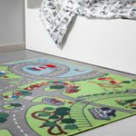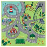 Этот ковер – настоящий город. Здесь есть дороги, дома, фермы, школы, цирк, футбольное поле, железная дорога и многое другое. Для игры идеально подойдут игрушечные машинки и фигурки серии ЛИЛЛАБУ.