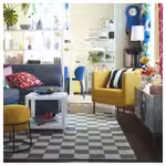Ковер КЛАССРУМ с орнаментом в клетку и полоской контрастного цвета по бокам придает интерьеру свежесть.