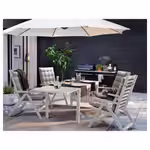 Ткань обеспечивает очень хорошую защиту от УФ-лучей. Коэффициент защиты (UPF): 25+. Ткань с таким коэффициентом защиты блокирует 96 % ультрафиолетового излучения. Регулируемый угол наклона зонта обеспечивает защиту от солнца в течение всего дня.